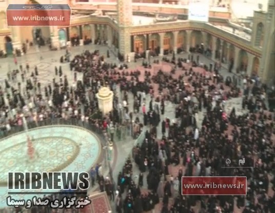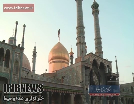 پرچم متبرک حرم حضرت ابا عبدالله الحسین نیز برفراز بارگاه کریمه اهل بیت (س) در قم به اهتزار در آمد.