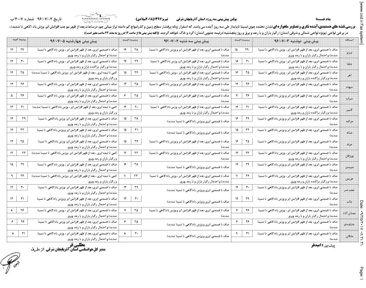 البته اداره کل هواشناسی آذربایجان شرقی رگبار پراکنده باران و رعد و برق را در شهرستان اهر پیش بینی کرده بود .