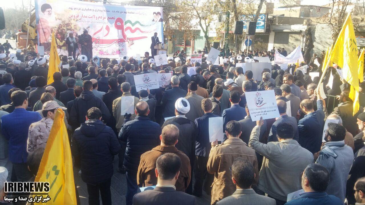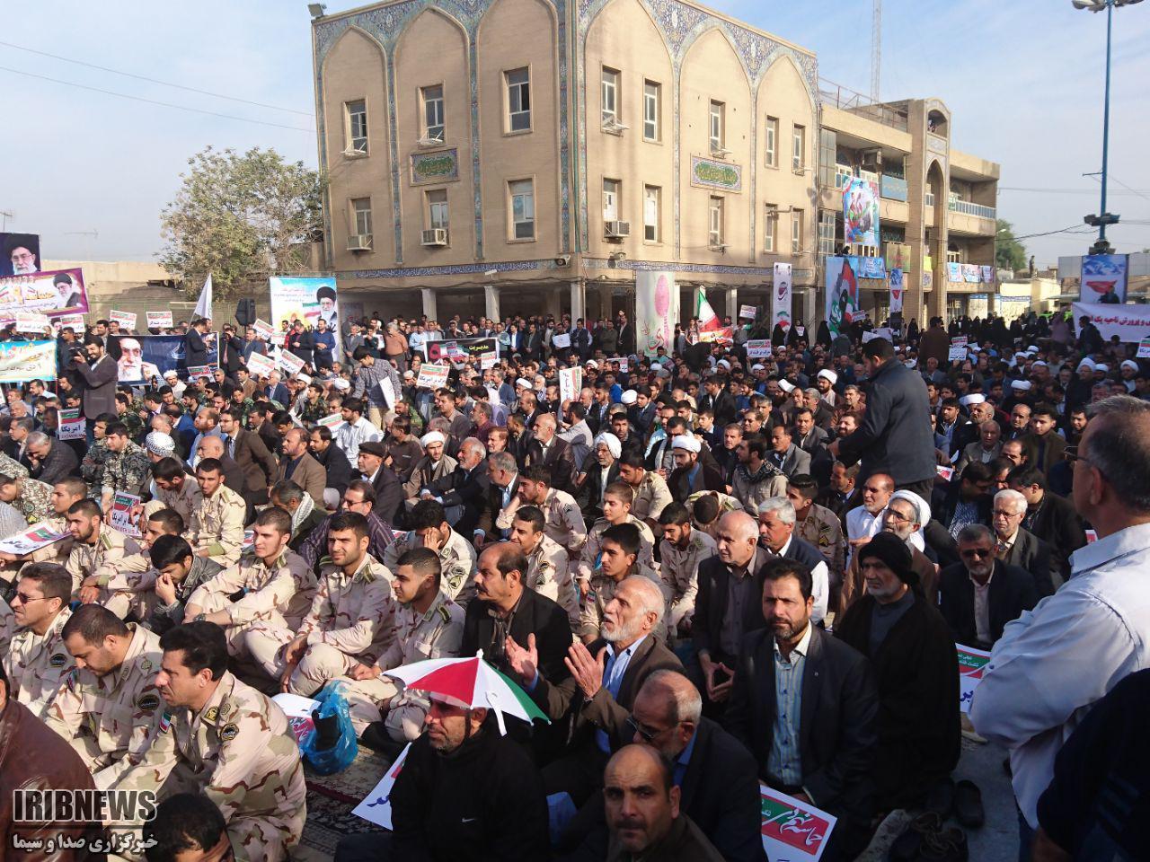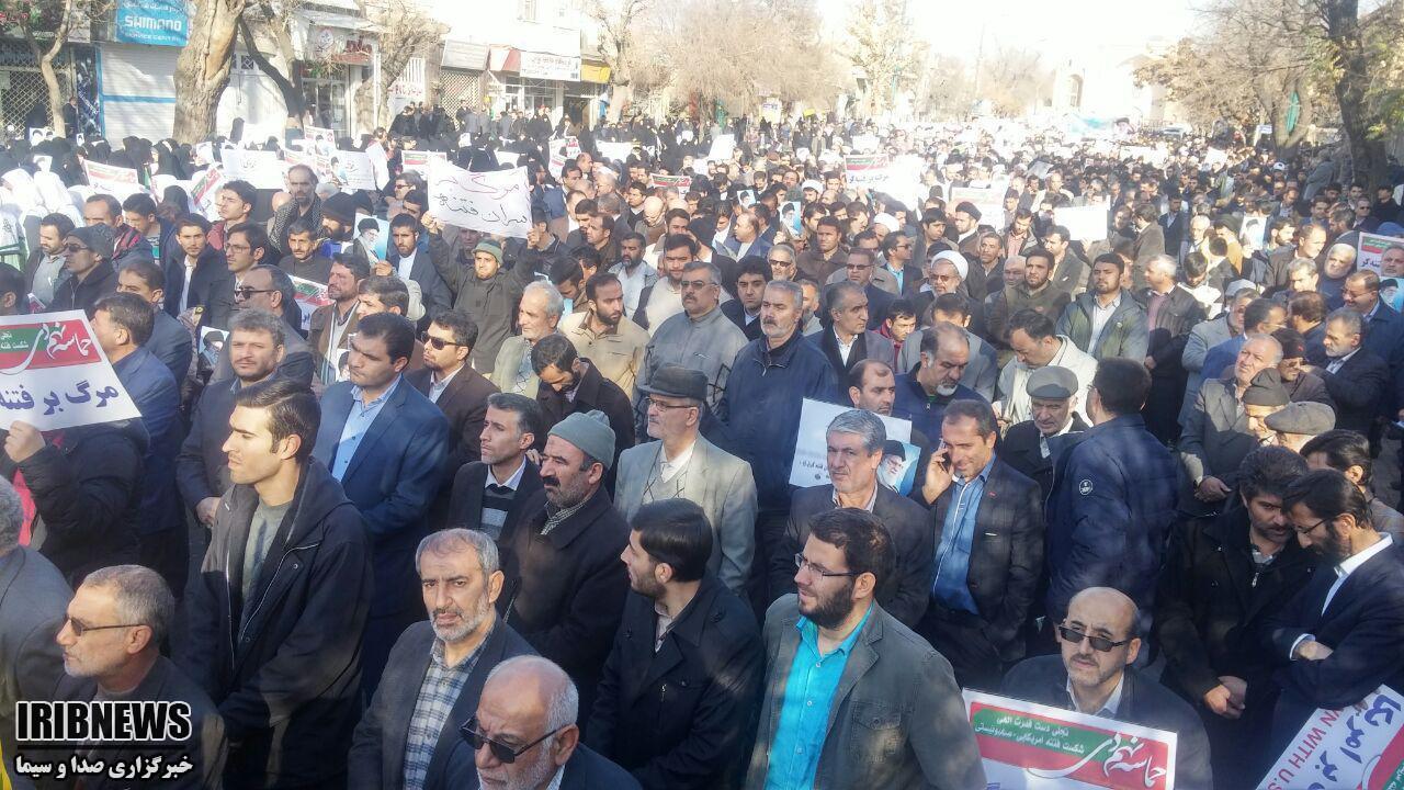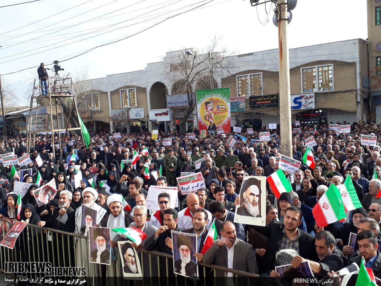 راهپیمایان با سردادن شعار هاي مرگ‌ بر آمریکا و مرگ‌ بر اسرائیل، مرگ بر فتنه گر، استکبار ستیزی و بصیرت خود را به رخ جهانیان کشیدند و هوشمندی، وقت شناسی، بصیرت و دشمن شناسی خود را به همگان نشان دادند.