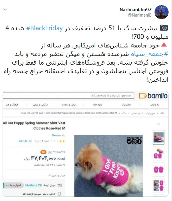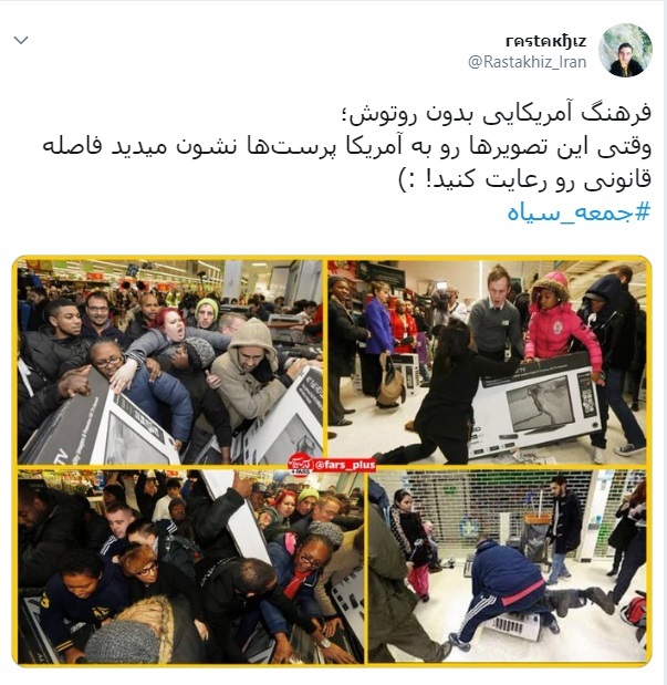بخشی از محتوا‌هايي را که کاربران در فضای مجازی با هشتک #جمعه_سياه منتشر کرده اند با شما به اشتراک می‌گذاریم:
