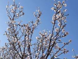 درختان بادام شهرستان سامان در دومین ماه زمستان به شکوه نشستن.
