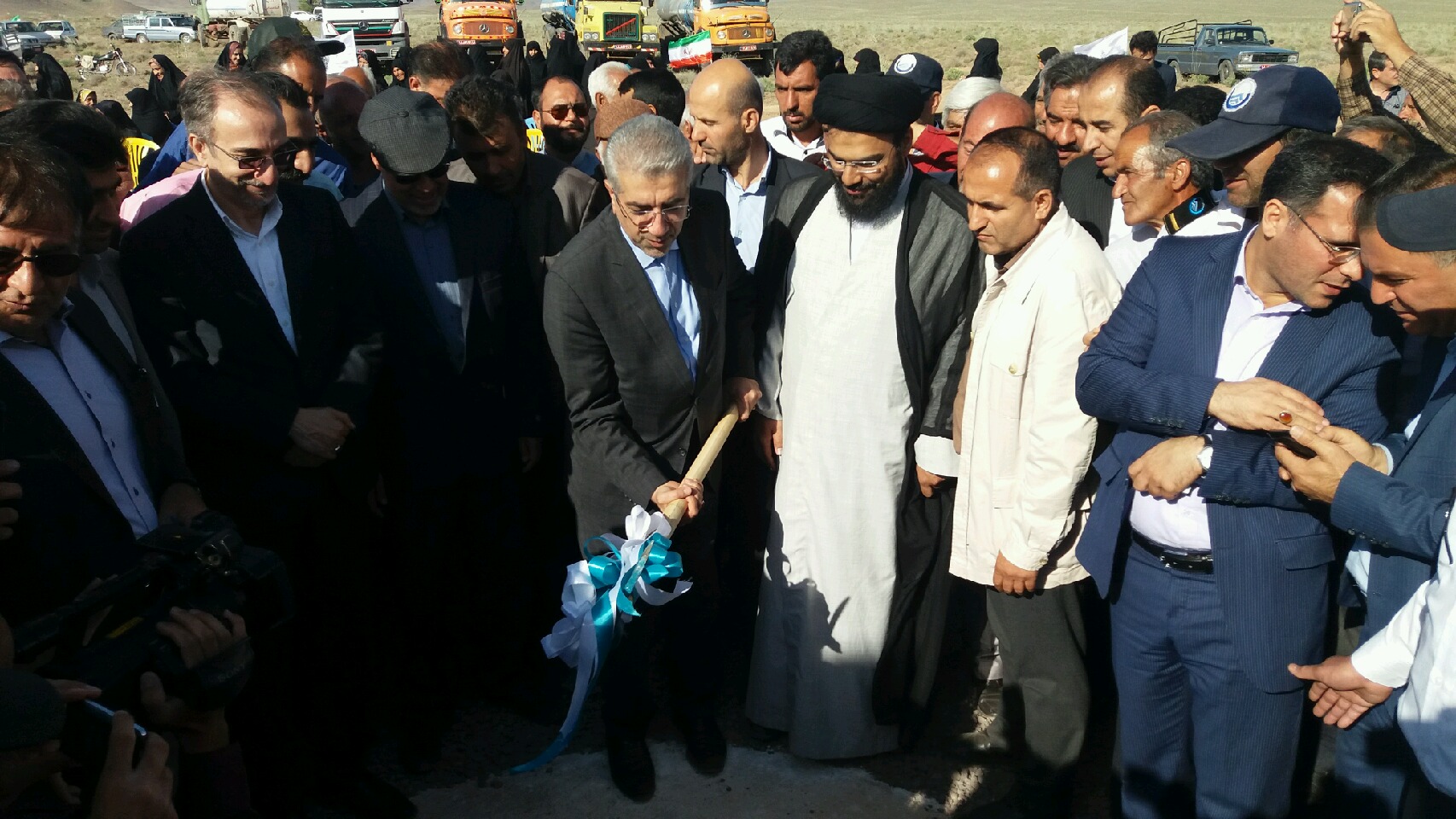 با حضور رضا اردکانیان وزیر نیرو عمليات اجرايي مجتمع آبرساني برزاوند در روستای نهوج شهرستان اردستان آغاز شد.