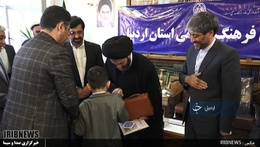 در ابتدای این نشست از امیر هادی بایرامی کودک 8 ساله روشندل اردبیلی به عنوان اولین کودک روشندل حافظ قرآن تجلیل شد.