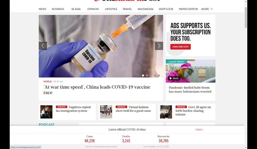 - اندونزی همزمان با عبور از مرز ۶۶ هزار مبتلاء به کرونا اعلام کرد: مناطق گردشگری با آلودگی کمتر کوید ۱۹، آماده بازگشایی به روی گردشگران خارجی است.