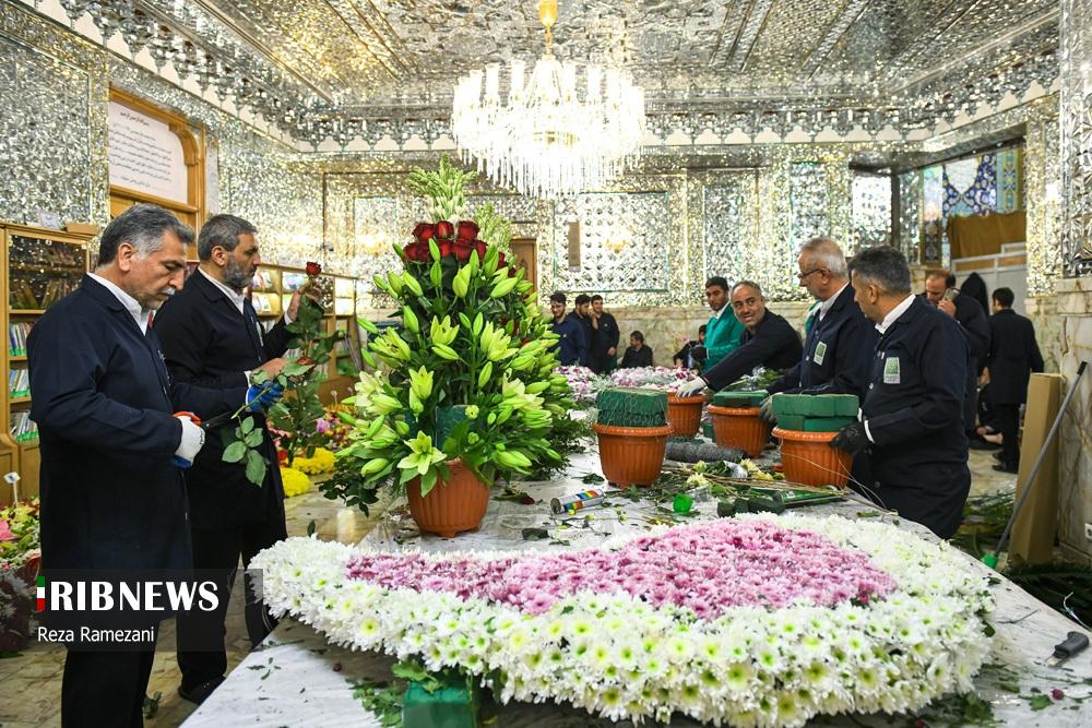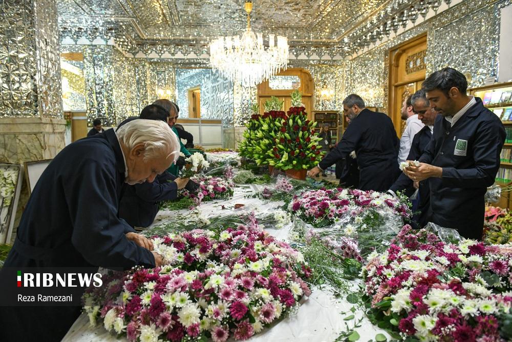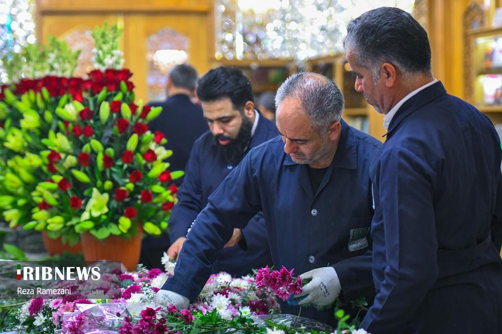 آماده سازی گل آرایی ضریح مطهر حضرت معصومه (س)