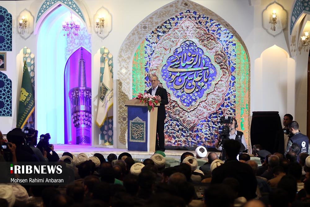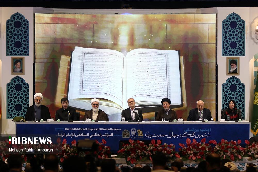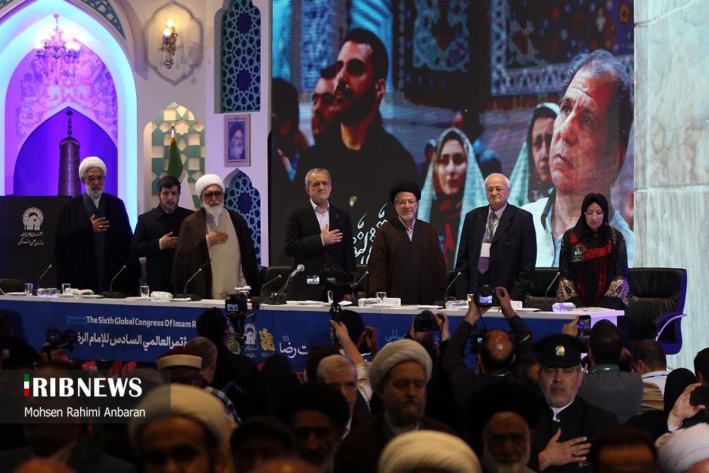 مراسم اختتامیه اجلاسیه بین المللی ششمین کنگره جهانی امام رضا (ع)، با حضور رییس جمهور، برگزار شد. این مراسم، شامگاه دوشنبه، ۱۵ اردیبشهت ۱۴۰۴، با حضور دکتر مسعود پزشکیان، رئیس جمهور، آیت الله احمد مروی، تولیت آستان قدس رضوی، حجت الاسلام سید رضا عاملی، دبیر ششمین کنگره جهانی امام رضا (ع) و جمعی از اندیشمندان و علمای جهان اسلام با محوریت حقوق و کرامت انسانی و بهره گیری از تعالیم اهل بیت (ع) به ویژه آموزههای امام رضا (ع)، در تالار قدس حرم مطهر رضوی، برگزار شد.