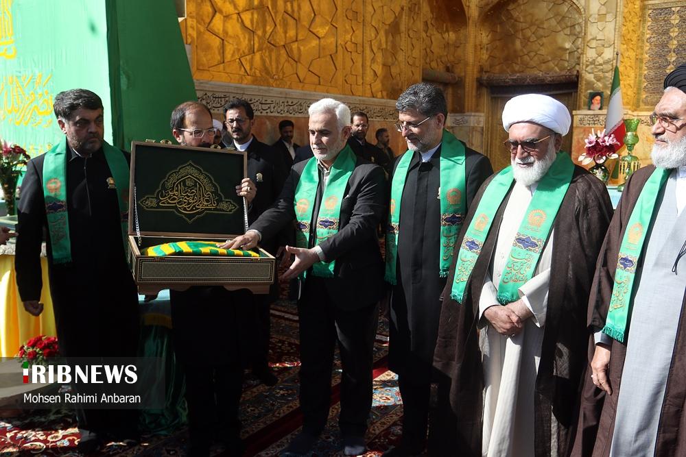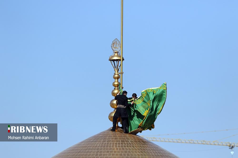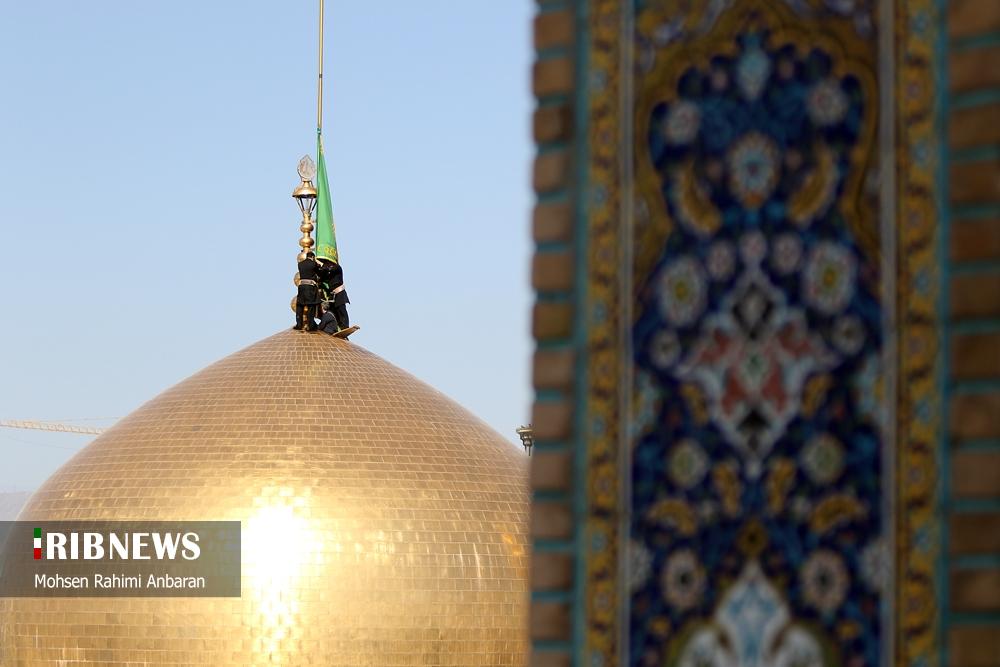 امروز جمعه ۱۹ اردیبهشت ماه ۱۴۰۴ و همزمان با ۱۱ ذی القعده، سالروز میلاد امام مهربانیها حضرت علی ابن موسی الرضا (ع)، آیین تعویض پرچم گنبد مطهر رضوی در صحن انقلاب اسلامی، برگزار شد و پرچم گنبد حرم مطهر رضوی، با حضور خادمان و زائران و مجاوران امام رئوف، به رنگ سبز درآمد.