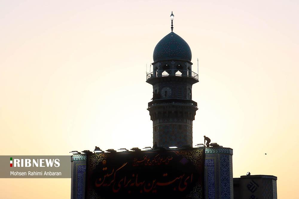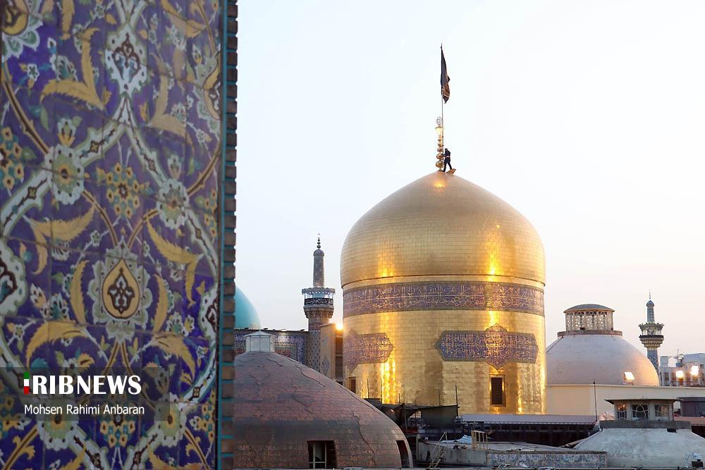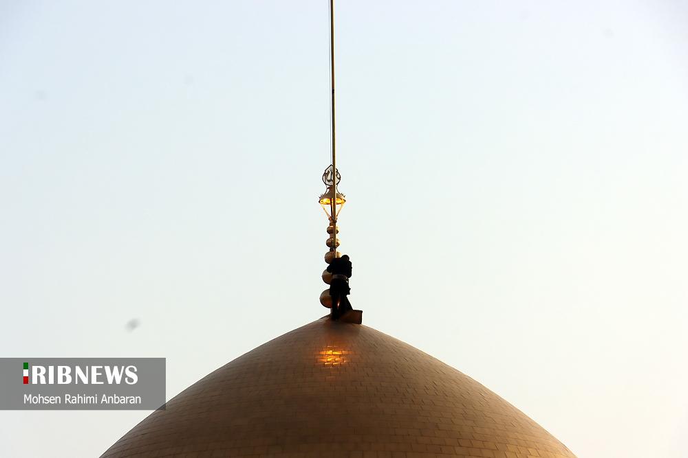 تعویض پرچم گنبد حرم حضرت معصومه(س) همزمان با آغاز ماه عزای حسینی(ع)