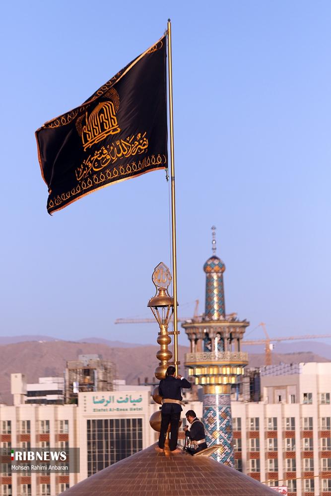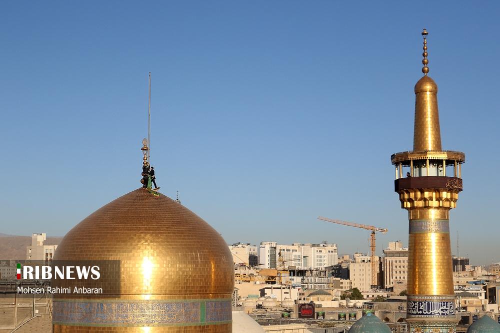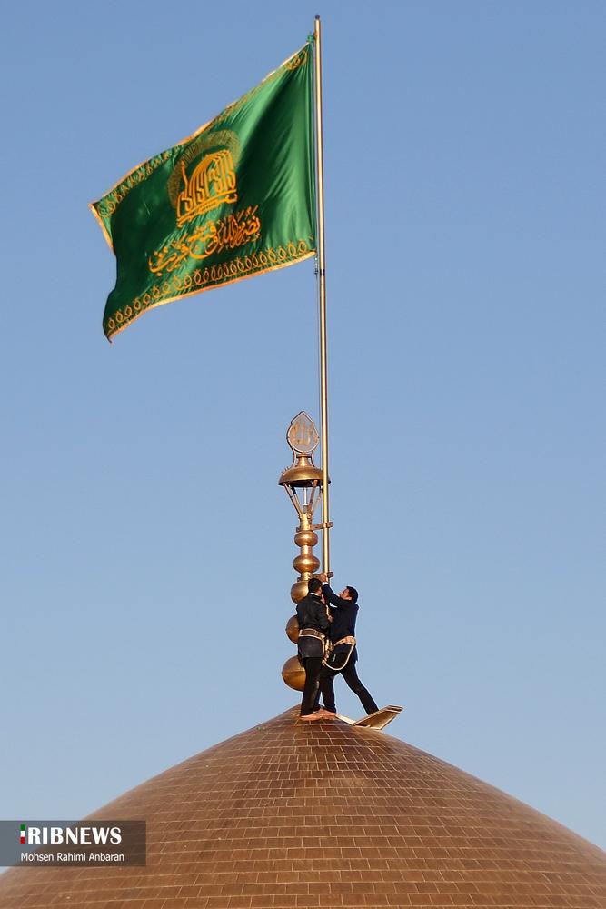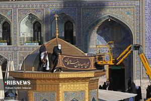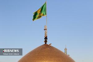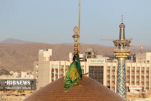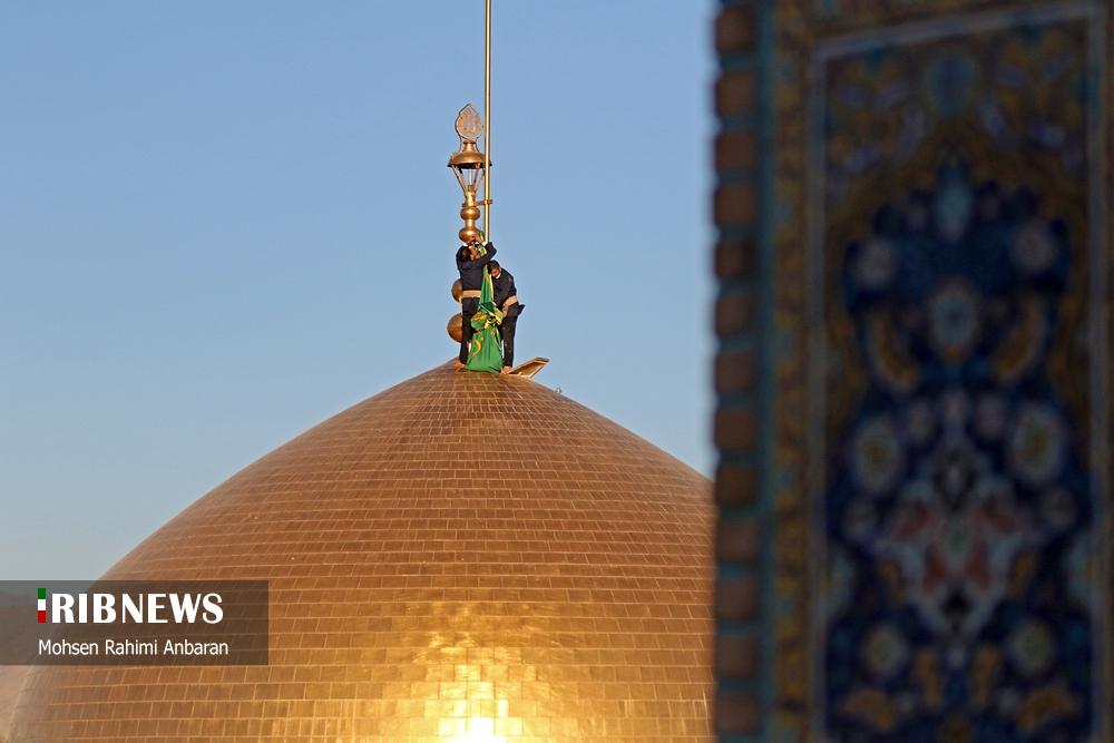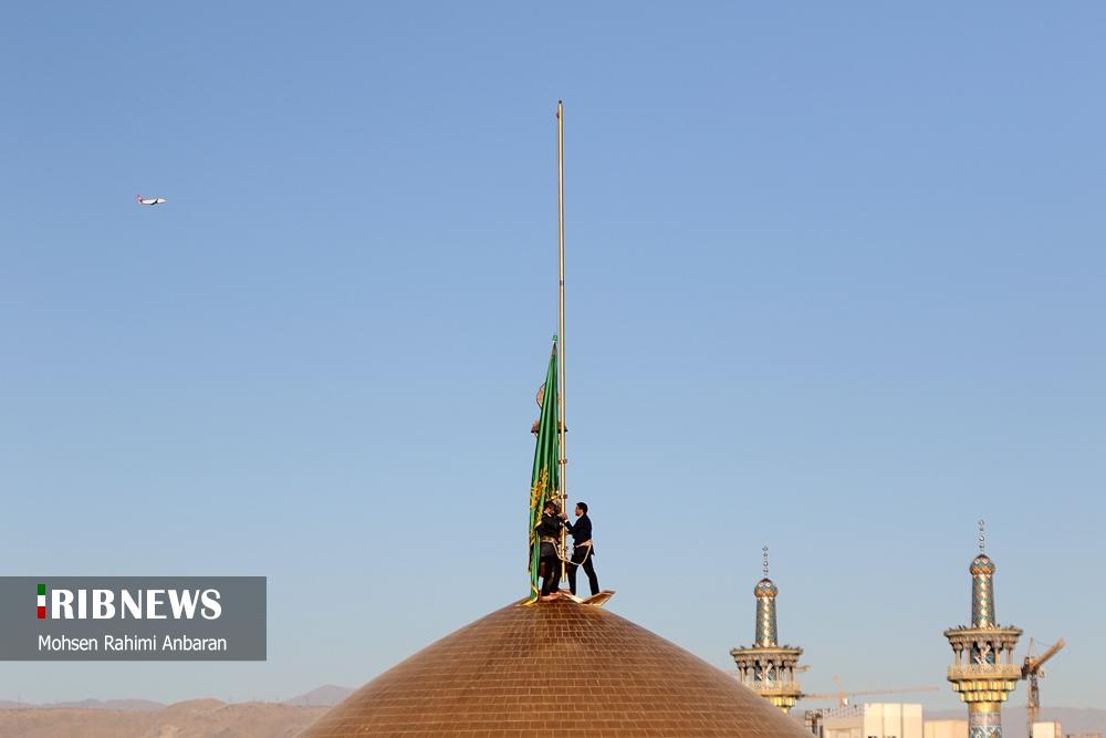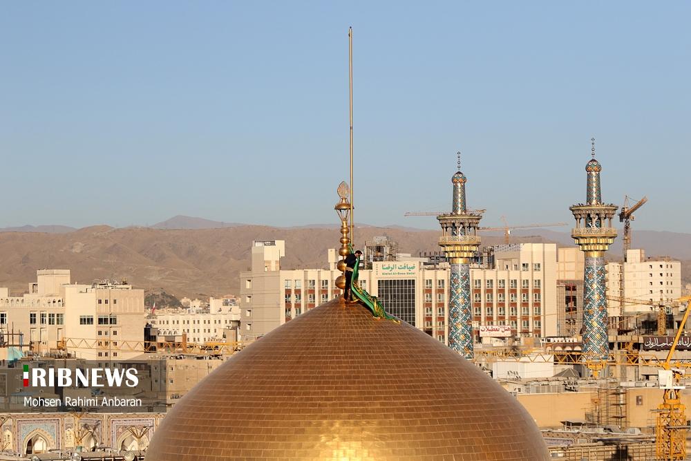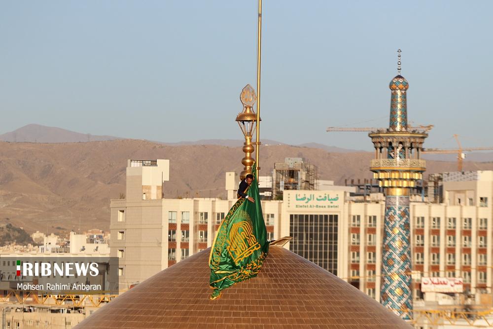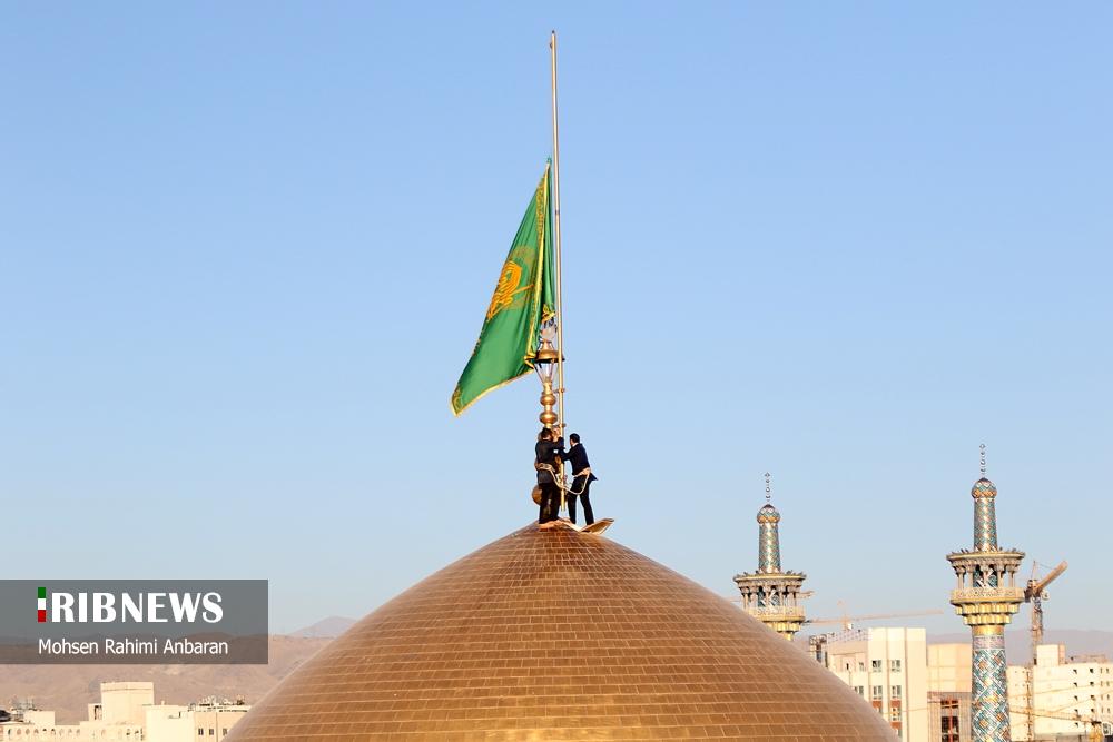 سحرگاه امروز چهارشنبه؛تعویض پرچم گنبد منور رضوی پس از ۶۳ روز در حرم امام رضا (ع) پس از پایان ایام عزاداری محرم و صفر و شهادت امام هشتم علیهالسلام و همزمان با آغازین روز های ماه ربیعالاول انجام شد. این مراسم با حضور خادمان حرم مطهر رضوی صورت گرفته و در آن پرچم سیاه عزاداری با پرچم سبز رضوی که با عبارت "نصرالله من الله و فتح قریب" مزین است، تعویض گردید