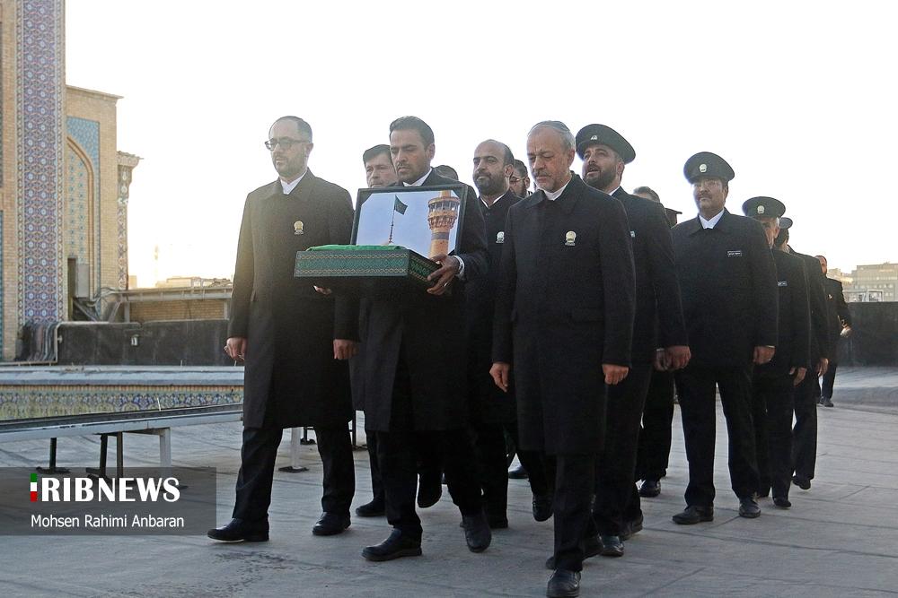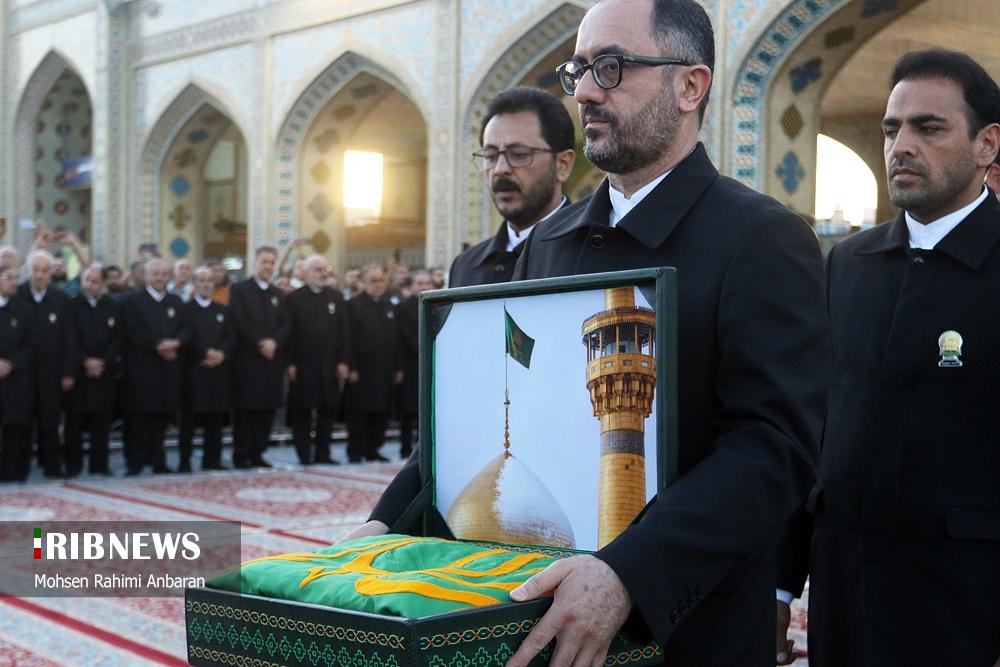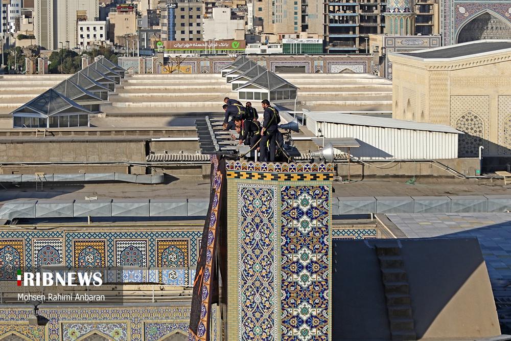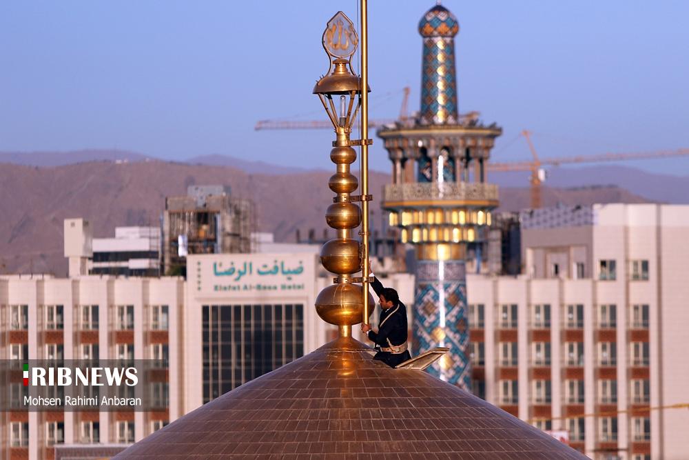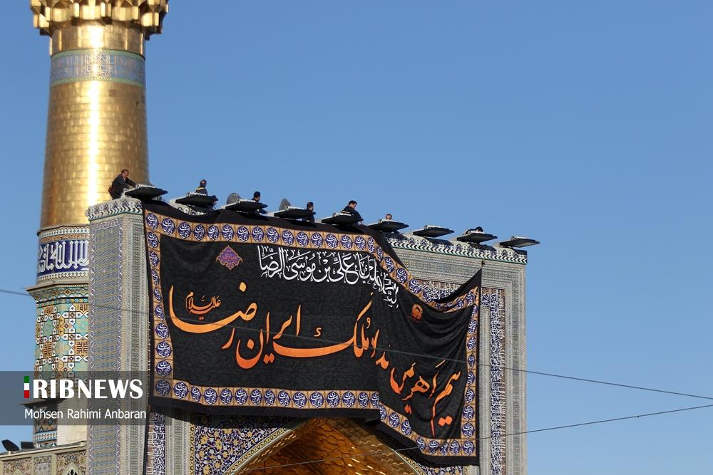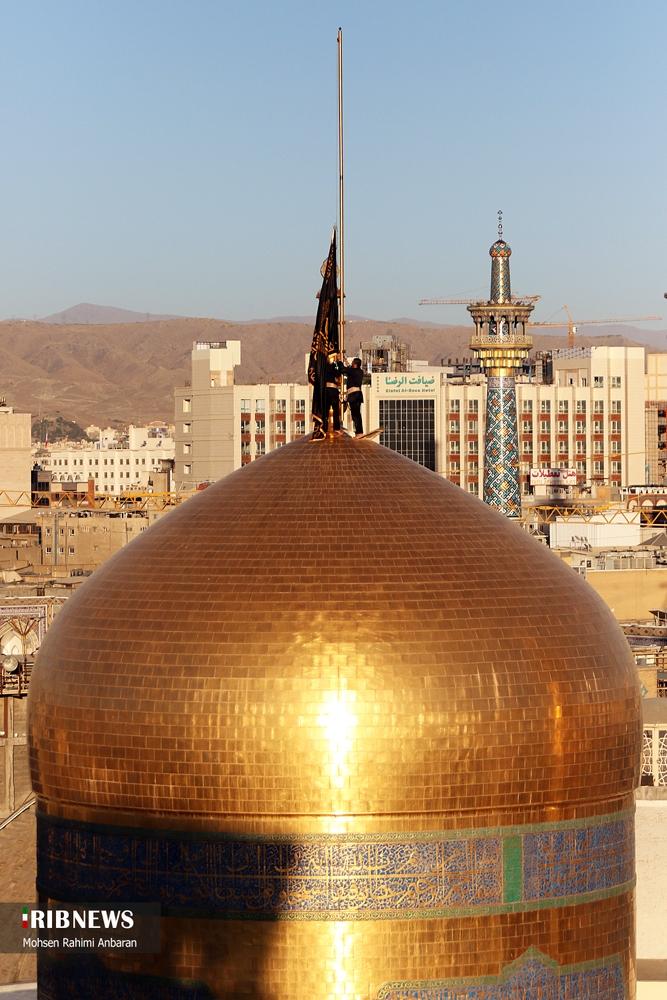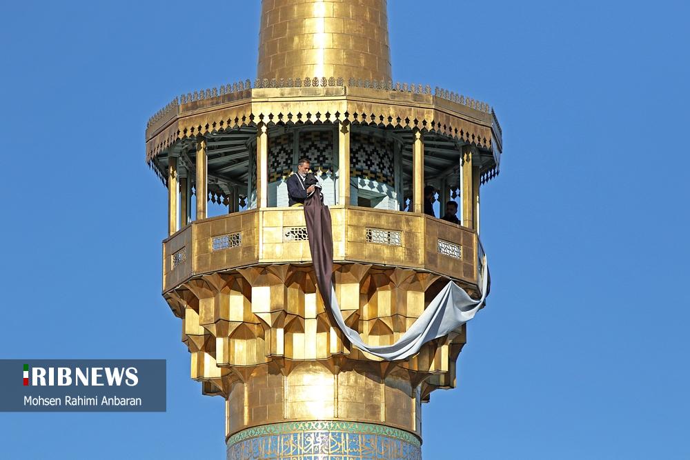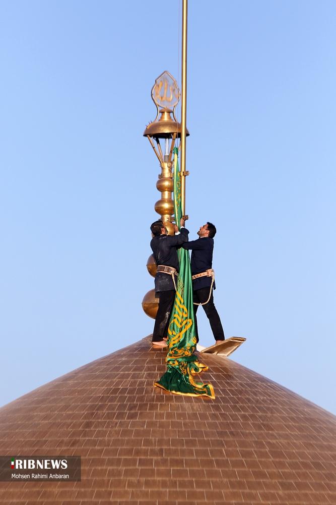 سحرگاه امروز چهارشنبه؛تعویض پرچم گنبد منور رضوی پس از ۶۳ روز در حرم امام رضا (ع) پس از پایان ایام عزاداری محرم و صفر و شهادت امام هشتم علیهالسلام و همزمان با آغازین روز های ماه ربیعالاول انجام شد. این مراسم با حضور خادمان حرم مطهر رضوی صورت گرفته و در آن پرچم سیاه عزاداری با پرچم سبز رضوی که با عبارت "نصرالله من الله و فتح قریب" مزین است، تعویض گردید