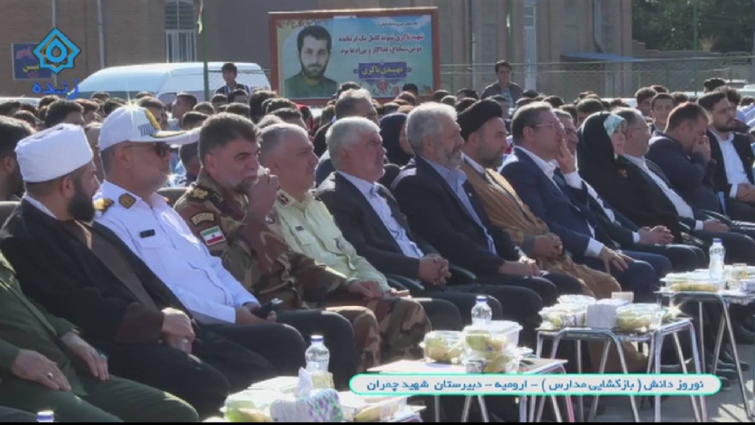 در این آیین که از دبیرستان پسرانه شهید چمران ارومیه پخش میشود، رحمانی استاندار آذربایجان غربی، محمودزاده معاون آموزش و پرورش، حجت الاسلام ذاکر نماینده مردم ارومیه در مجلس شورای اسلامی، مسئولان آموزش و پرورش استان و دیگر مسئولان استانی حضور دارند.