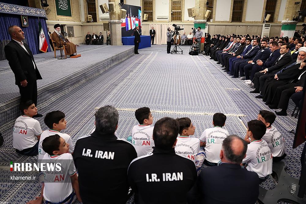 حضرت آیتالله خامنهای رهبر معظم انقلاب اسلامی صبح امروز ۲۸ مهر ماه ۱۴۰۴ در دیدار صدها نفر از قهرمانان رشتههای مختلف ورزشی و مدالآوران المپیادهای علمی جهانی، این افتخارآفرینان را مظهر رشد و تجلّی قدرت ملی خواندند و تأکید کردند: شما ثابت کردید جوانان امیدآفرین ایران عزیز به عنوان «نماد ملت»، این قدرت را دارند که بر قلهها بایستند و ذهنها و چشمهای جهان را متوجه فضای روشن ایران کنند.