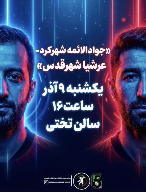 به گزارش خبرگزاری صدا و سیما مرکز چهارمحال و بختیاری،در این هفته جوادالائمه شهرکردبه مصاف عرشیا شهر قدس می‌رود.