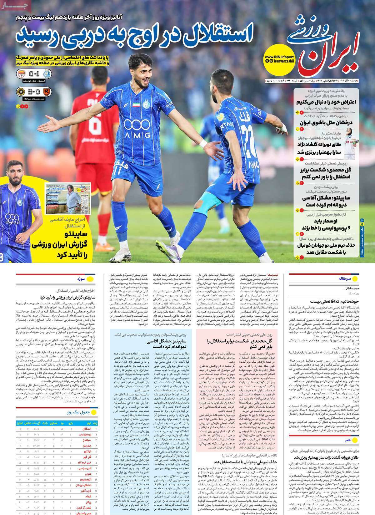 روزنامه‌های ورزشی دوشنبه ۱۰ آذر ۱۴۰۴ به موضوعات مختلف ورزشی پرداخته‌اند.