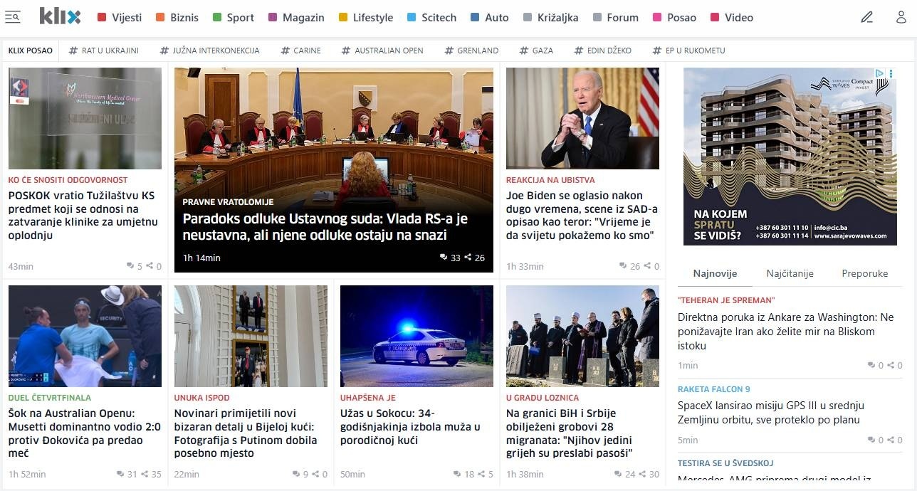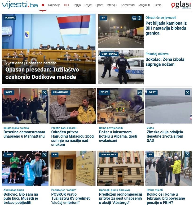 عناوین مهم رسانه‌های بوسنی و هرزگوین