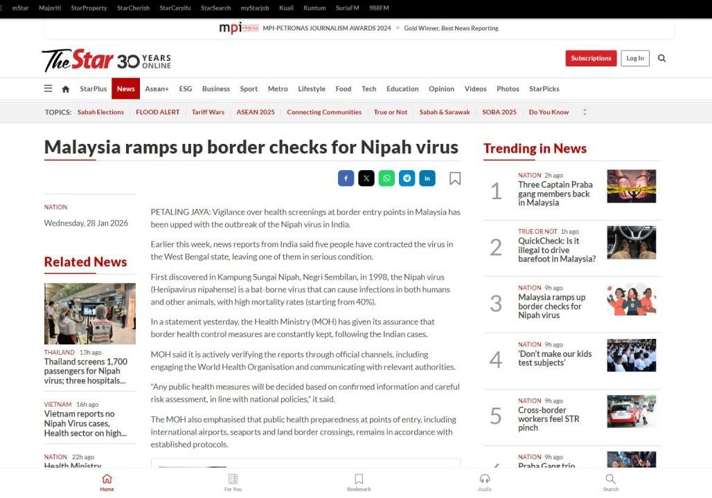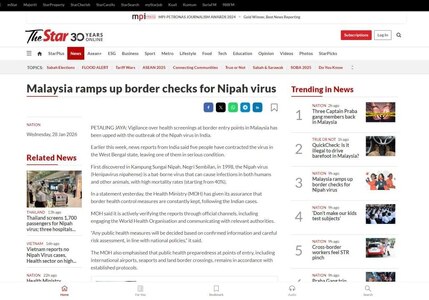 - فرودگاه‌های آسیایی در بحبوحه نگرانی از شیوع ویروس «نیپا» اقدامات کنترلی بهداشتی سختگیرانه‌تری را اعلام کردند
