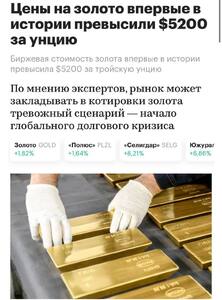⁃ قیمت طلا برای نخستین‌بار در تاریخ از ۵۲۰۰ دلار به‌ازای هر اونس فراتر رفت